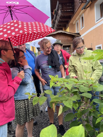 Neben informativen Impulsvorträgen standen geführte Exkursionen zu Neophyten-Hotspots in Stein/Enns, St. Nikolai und Öblarn auf dem Programm. Besonders eindrucksvoll war die Gartenführung im Schaugarten von Anita Zach in Edling, wo die Herausforderungen im Umgang mit Neophyten im eigenen Garten anschaulich demonstriert wurden.