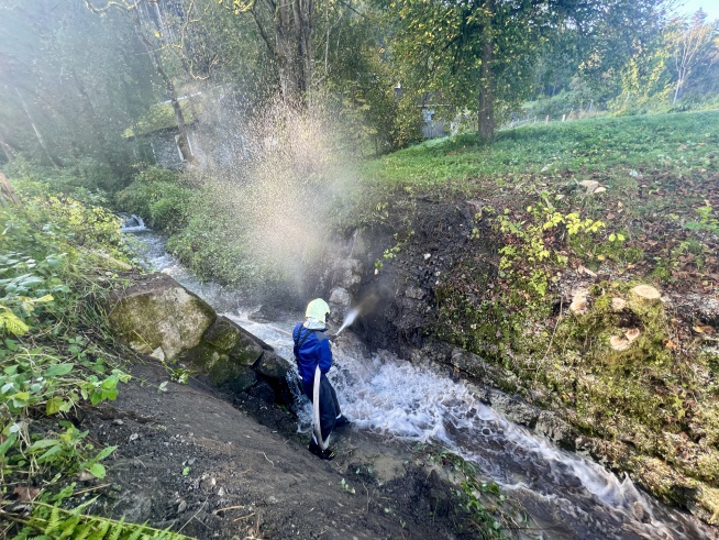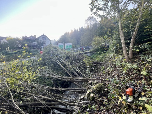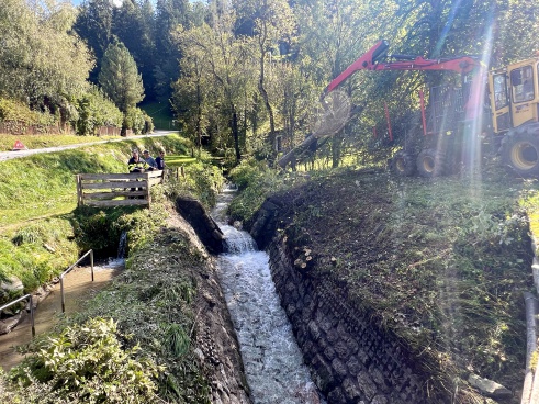 Am vergangenen Samstag, 21.09.24, hieß es wieder „Unser Dörfl lassen wir nicht überfluten!“. Unter diesem Motto konnten gemeinsam im Ortsteil Moosheim der steirischen Gemeinde Michaelerberg-Pruggern wieder 500 m Wildbach entschärft werden. Zwölf Mann der Freiwilligen Feuerwehr Michaelerberg und einige Anrainer haben mit vereinten Kräften den Bach von sogenannten Übelständen, insbesondere Verwachsungen im und am Bachbett, sowie ins Gerinne hängendes Gestrüpp befreien können. Somit wurde nun das Risiko von Verklausungen bei Hochwasser Ortsgebiet minimiert. Ein großer Dank gilt auch Johann Mösenbacher, welcher die Aktion tatkräftig mit Mann und schwerem Gerät unterstützt hat. Mit Hilfe des Holzkrans konnte das Gestrüpp rasch und effizient weggeräumt werden.