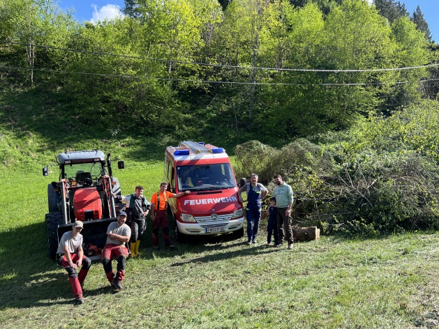An der Aktion beteiligten sich vier Mitglieder der Freiwilligen Feuerwehr Fleiß, Bürgermeister Werner Schwab sowie ein Anrainer, der mit Traktor und Seilwinde wertvolle Hilfe leistete. Nach getaner Arbeit erfolgte beim Ödwirt der gemütliche Ausklang.